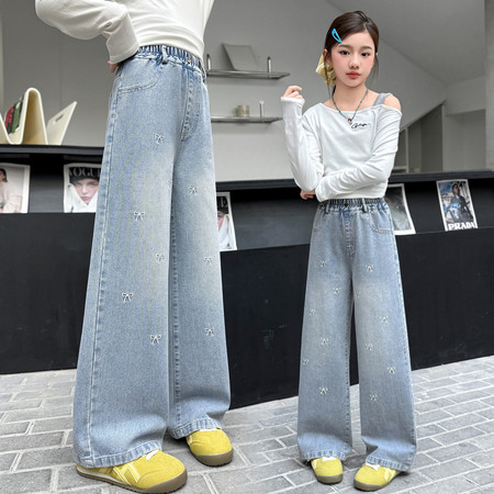1*8收藏“2602蝴蝶结刺绣牛仔阔腿裤”