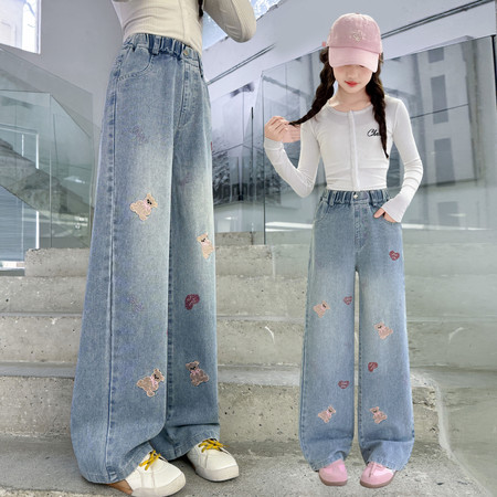 1*5收藏“2606小熊刺绣牛仔阔腿裤”