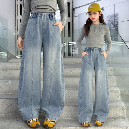 3*俊下载视频“2606小熊刺绣牛仔阔腿裤”