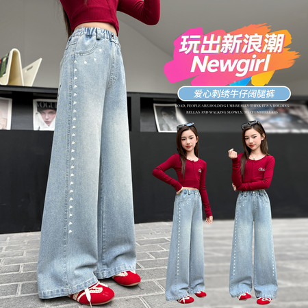 1*2下载视频“2603爱心刺绣烫钻牛仔阔腿裤”